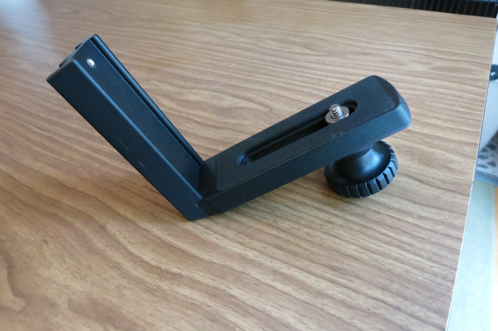 I think this was sold by Orion - L-bracket for binoculars with Vixen dovetail bar. This allows you to use binoculars with a side-mount alt-az mounting. Only used a few times, has a few marks on it from clamping.