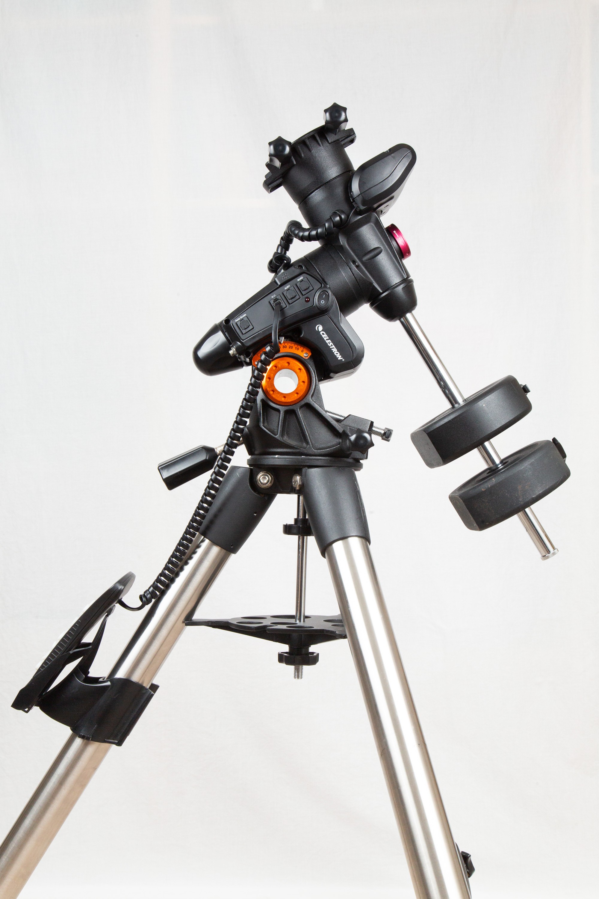 This mount would perform incredibly well for anyone interested in starting their astrophotography hobby at a reasonable price point or observers with telescopes up to 30lbs. The mount has some general wear and tear and the hand controller has a mild scratch on the screen (pictured), but all motors, electronics, and mechanical elements function perfectly.