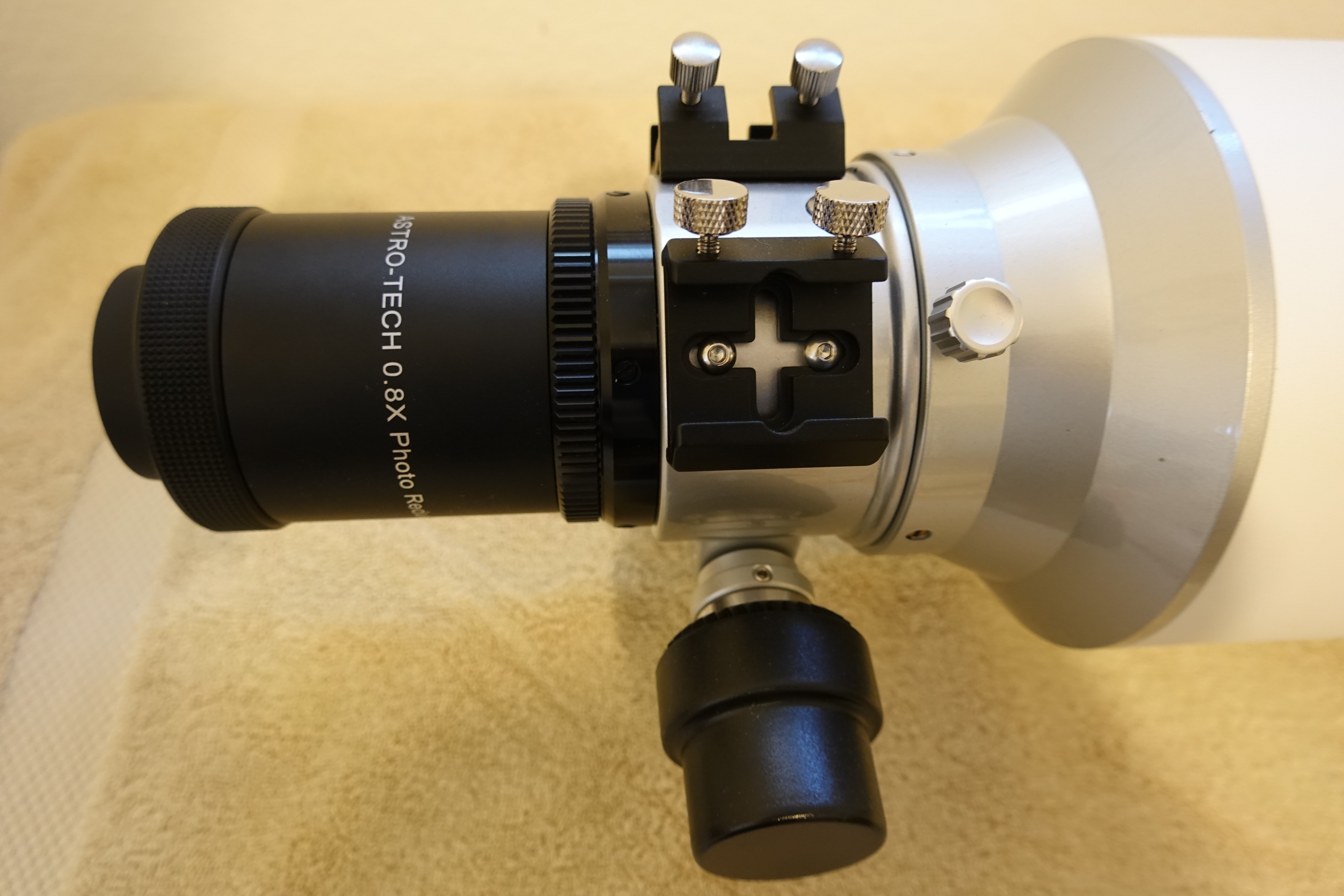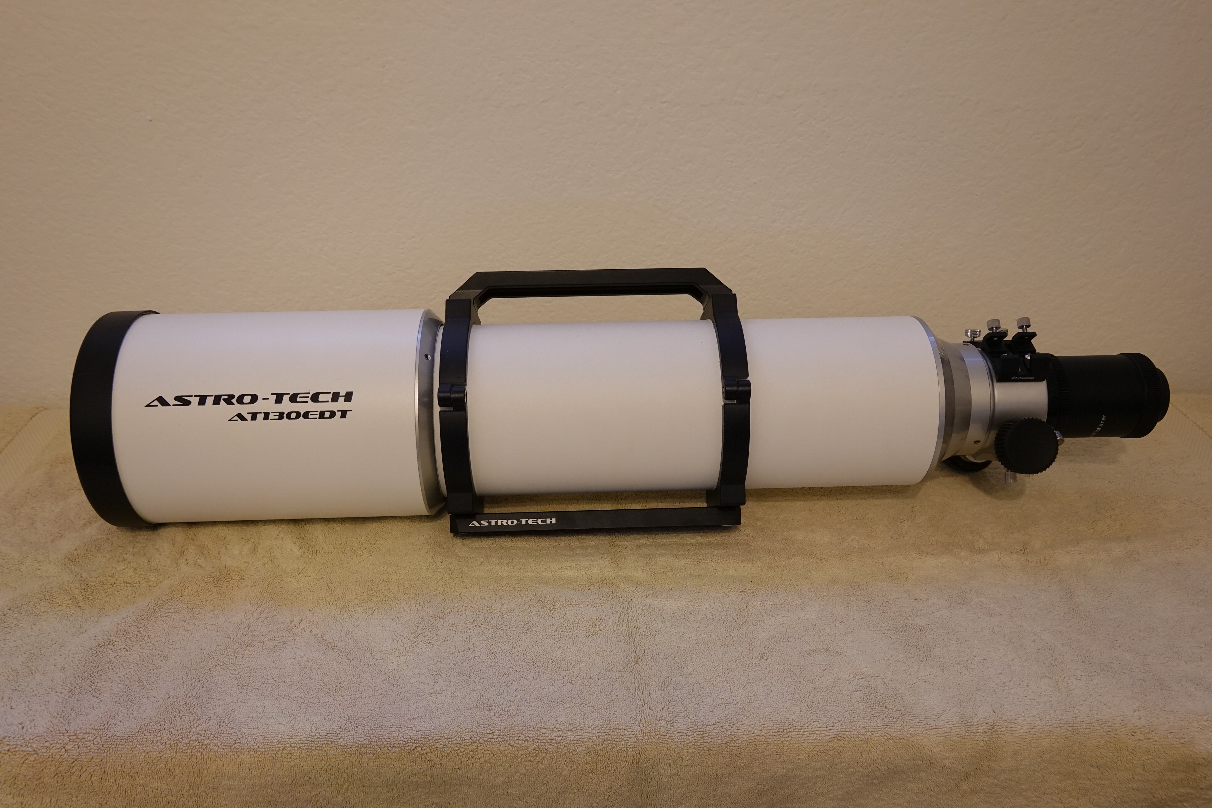 Purchased about 6 years ago but only used about 6 hours (visual) as I have other scopes. I added the Astro-Tech handle kit, and then the Astro-Tech .8x Reducer Field Flatterner Version II for the 130 EDT (never used). Also includes the hard shell case and double container board shipping boxes. There is a small nick in the paint on the dew shield, otherwise like new. Always stored indoors. Total $2100 + 75 + 229 before taxes and shipping = $2404. I'm asking $1750.00.