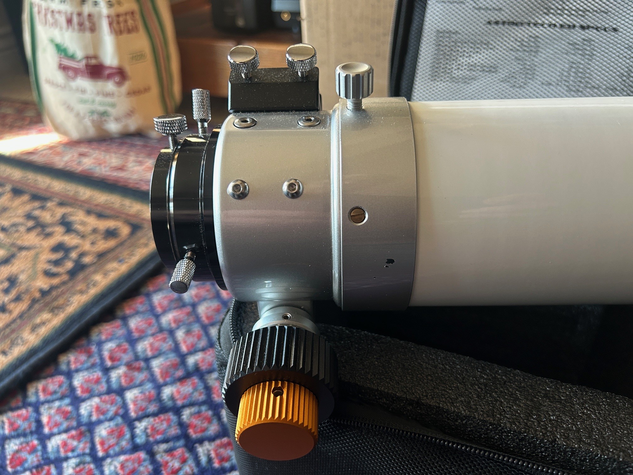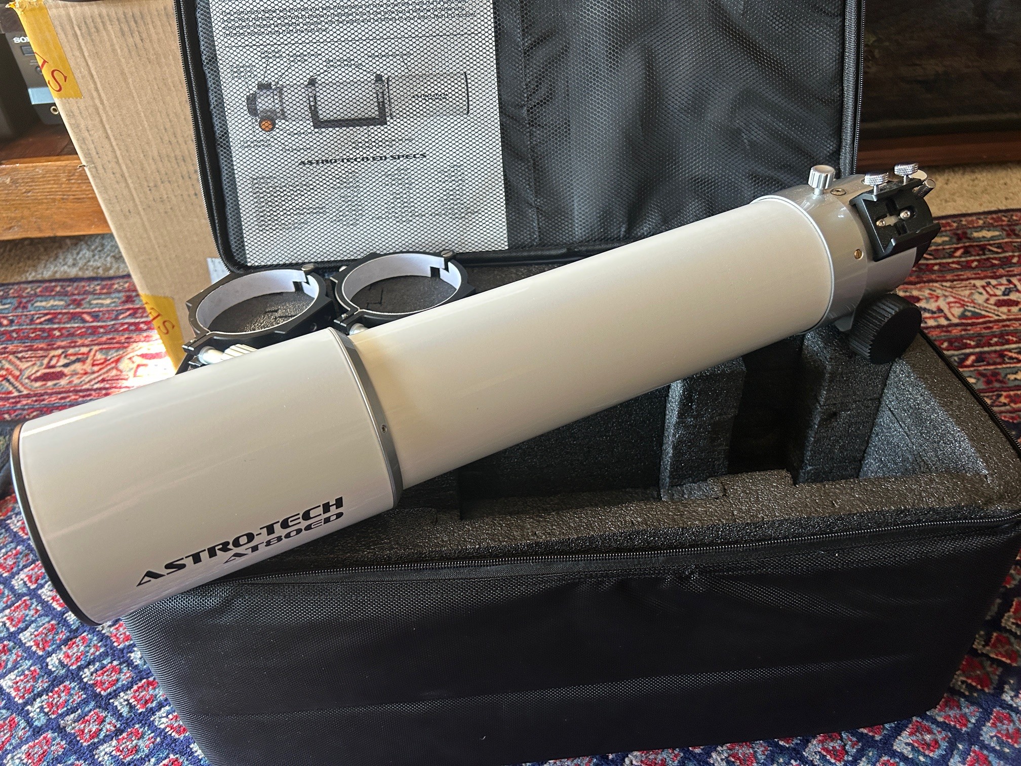 Selling my AT80ED doublet refractor. Comes with soft case and rings. Small paint scratch on focuser. See closeup photo of the focuser.