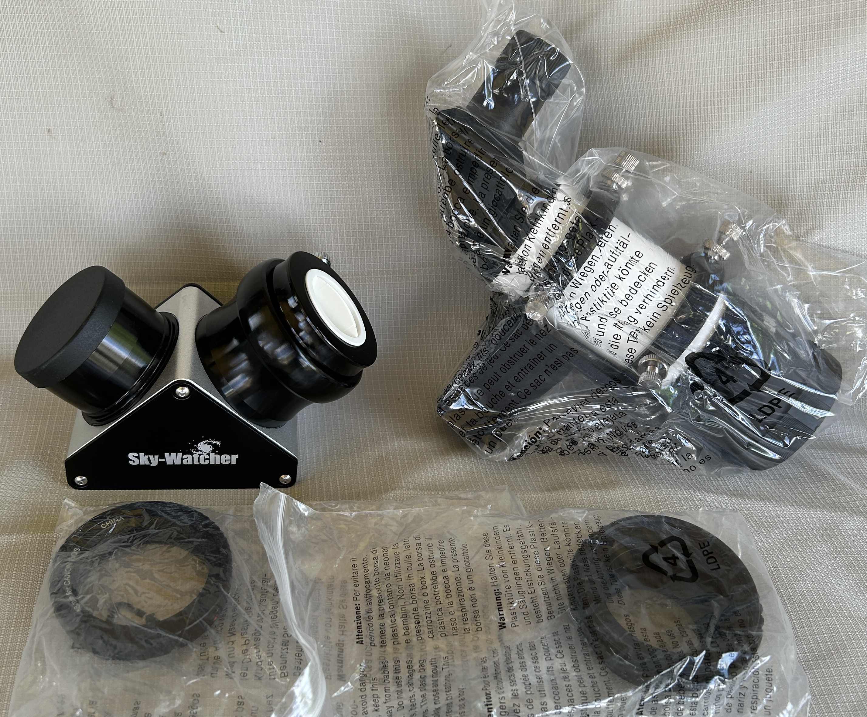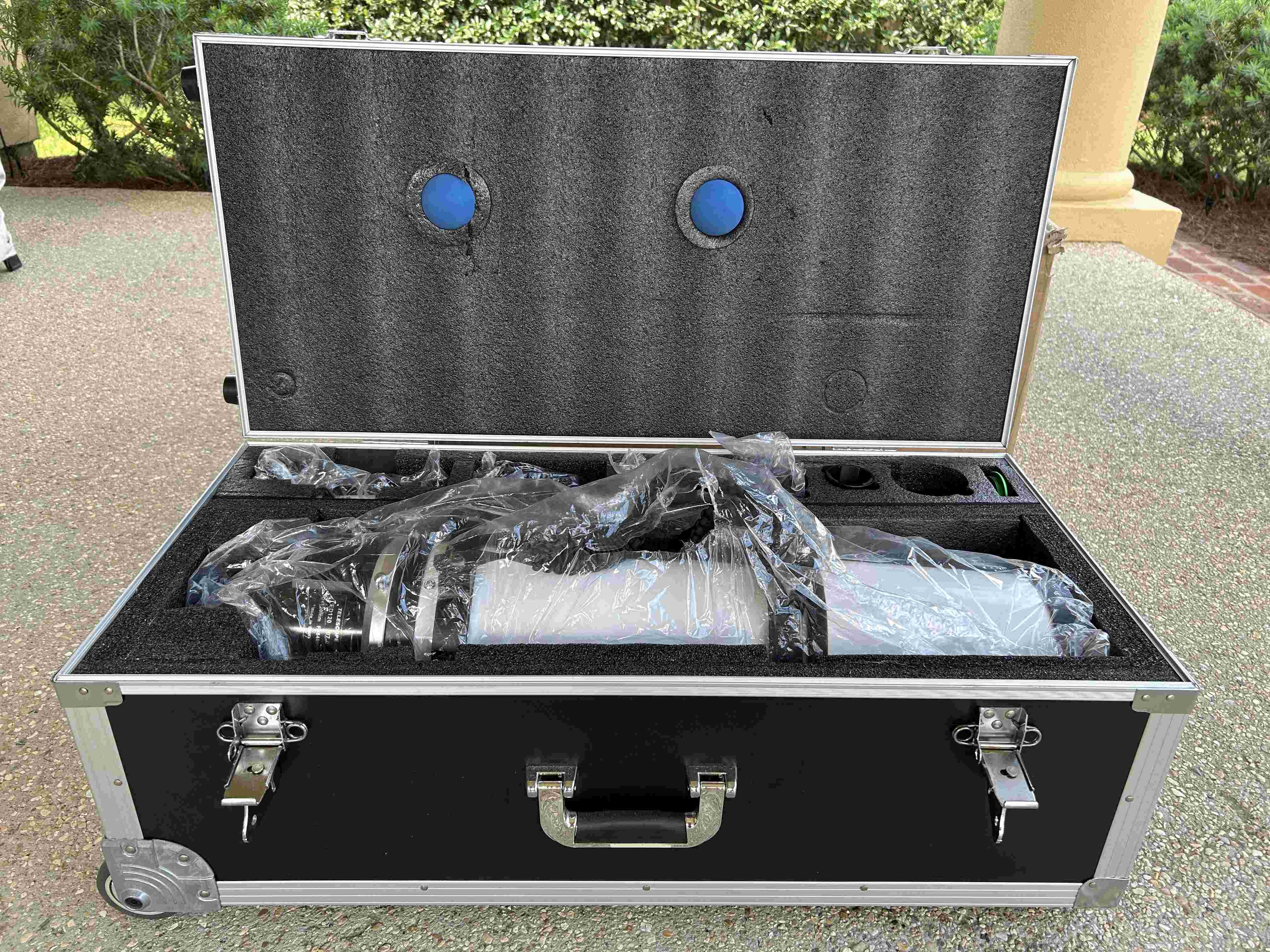 There is only one minor blemish on the body (see photo). The telescope will ship inside the Sky-Watch padded metal case, which will be inside the original Sky-Watcher padded cardboard box.