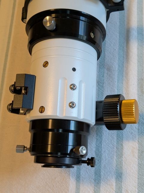 The OTA comes with caps, finder shoe, stock heavy-duty rings, an 8" dovetail plate, and a custom made handle. The OTA is lightweight coming in at less than 10 pounds with rings and dovetail, and the dew shield retracts providing a length of only 24 inches. The scope will ship in all the original packaging from Stellarvue. The cost is $750 plus UPS or FedEx shipping to CONUS. I will take a cashiers check (sorry no PayPal), or cash if you are picking it up in Olympia, WA.