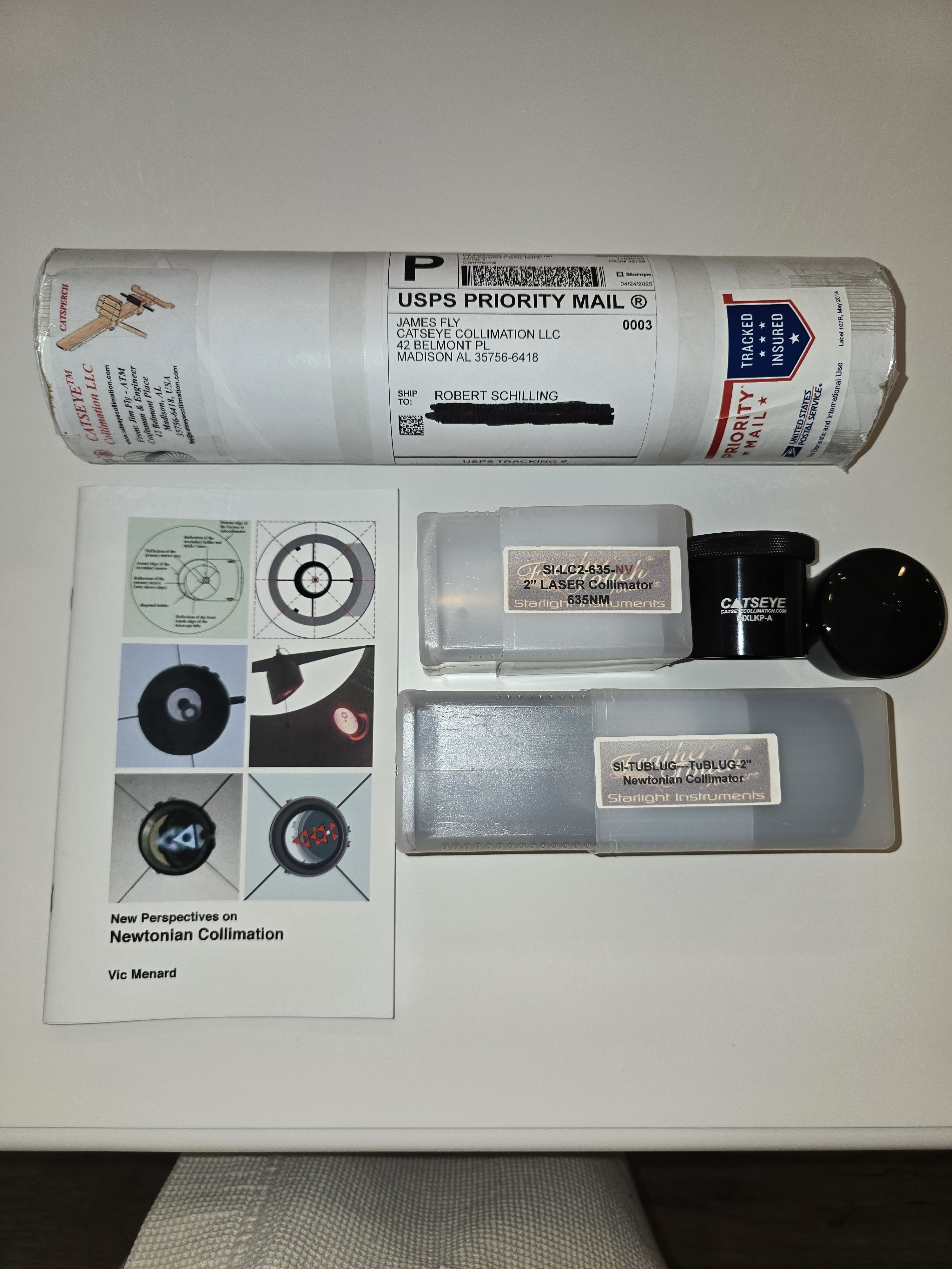 For sale is a state-of-the-art collimation ensemble for the discriminating Newtonian owner. The only extra piece you will need for ultimate precision is a CatsEYE adjustable Sight Tube. No more guessing or "close enough" for folks with premium fast Newtonians. The ensemble includes: